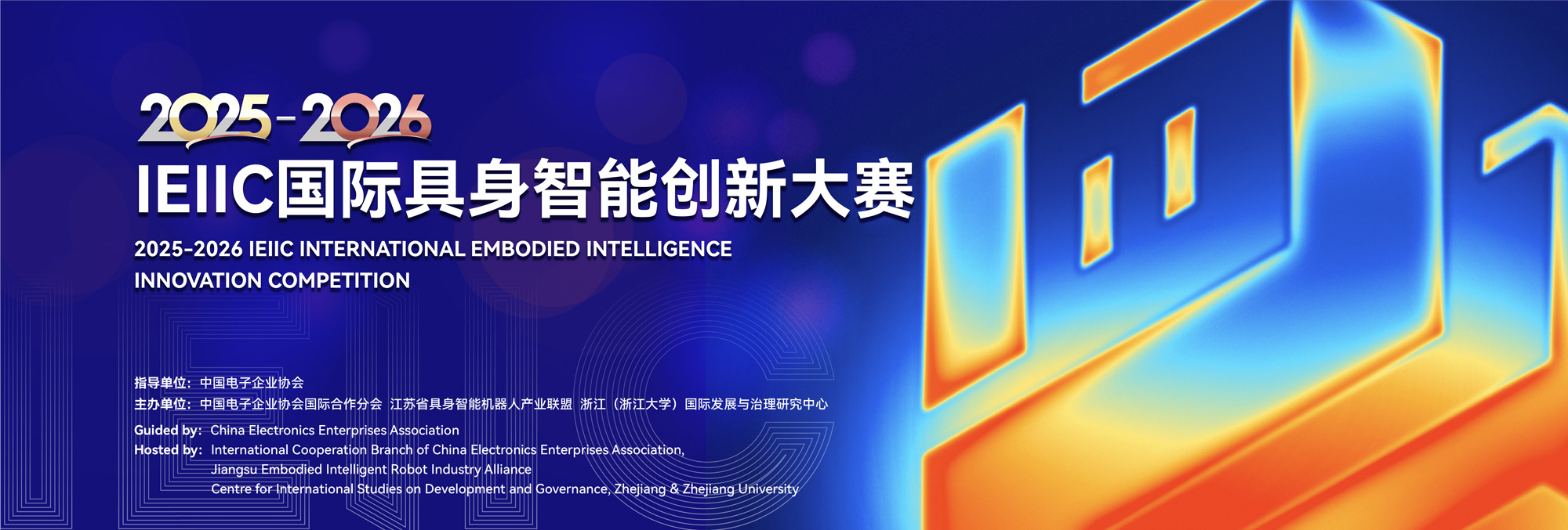 In a comprehensive effort to implement the "Guidelines on Deepening the 'AI Plus' Initiative," promote extensive and deep integration of artificial intelligence across all sectors of the economy and society, accelerate the development of new quality productive forces, and better support Chinese modernization, the International Cooperation Branch of the China Electronics Enterprises Association, in collaboration with the Zhejiang (Zhejiang University) Center for International Development and Governance, will organize the "IEIIC International Embodied Intelligence Innovation Competition" (hereafter referred to as "the Competition"). The Competition will be guided by the China Electronics Enterprises Association.